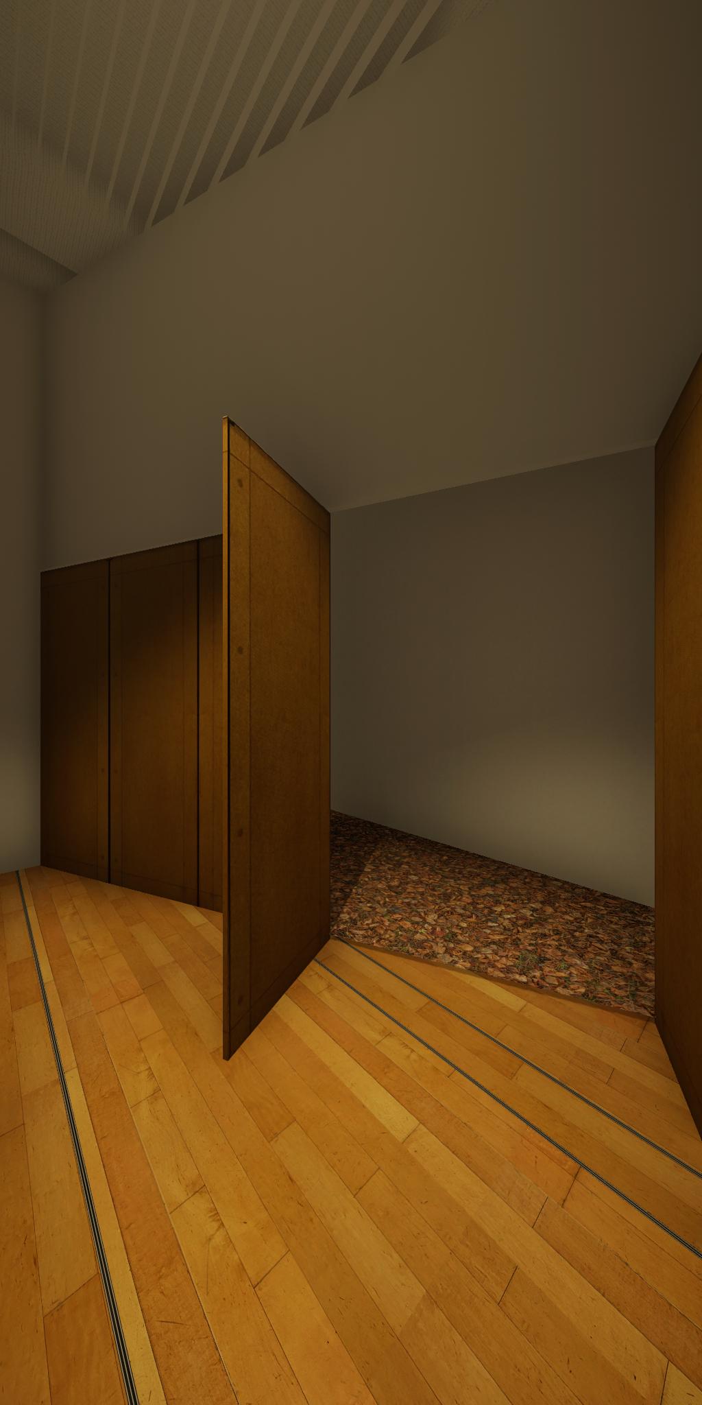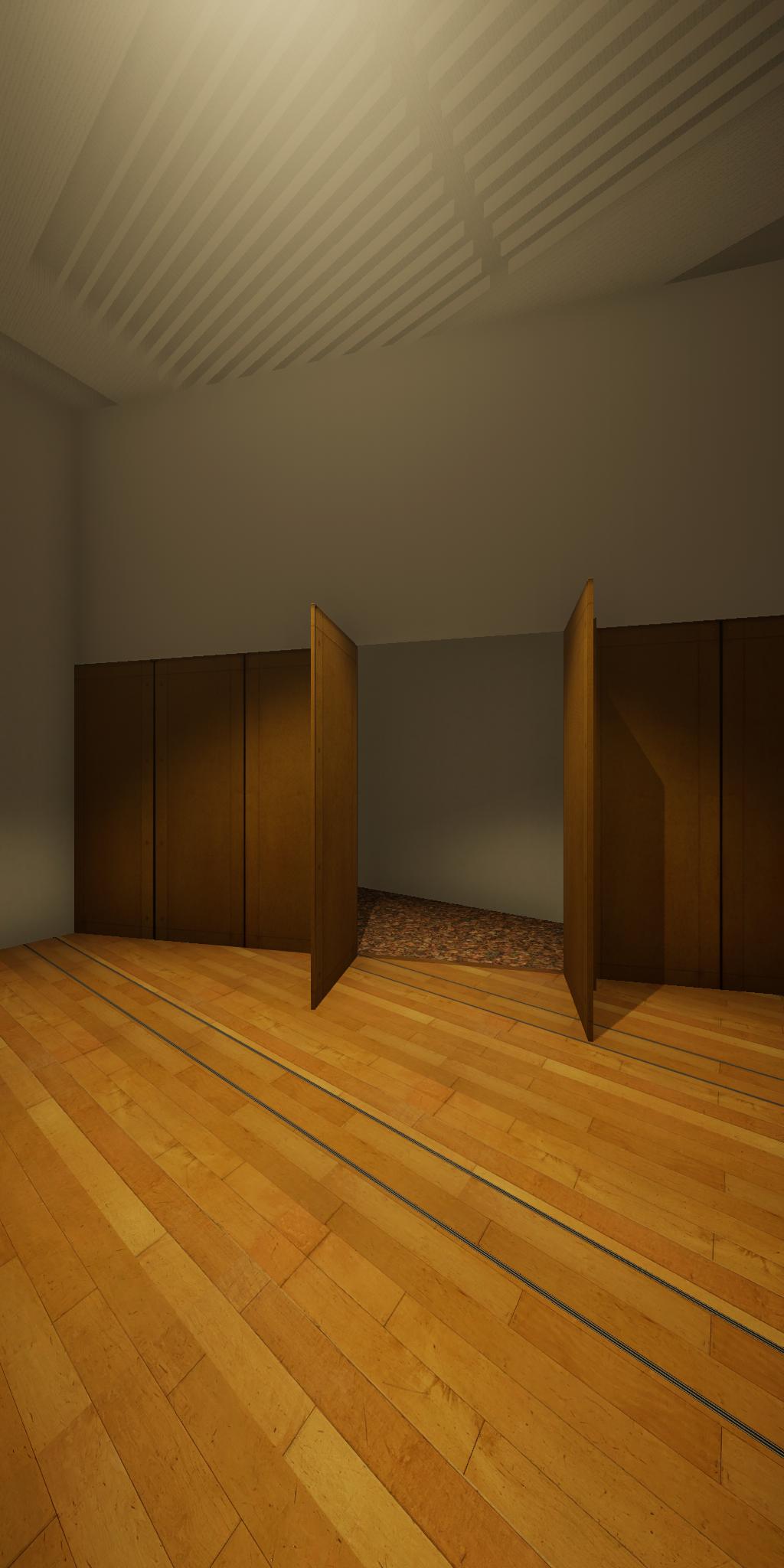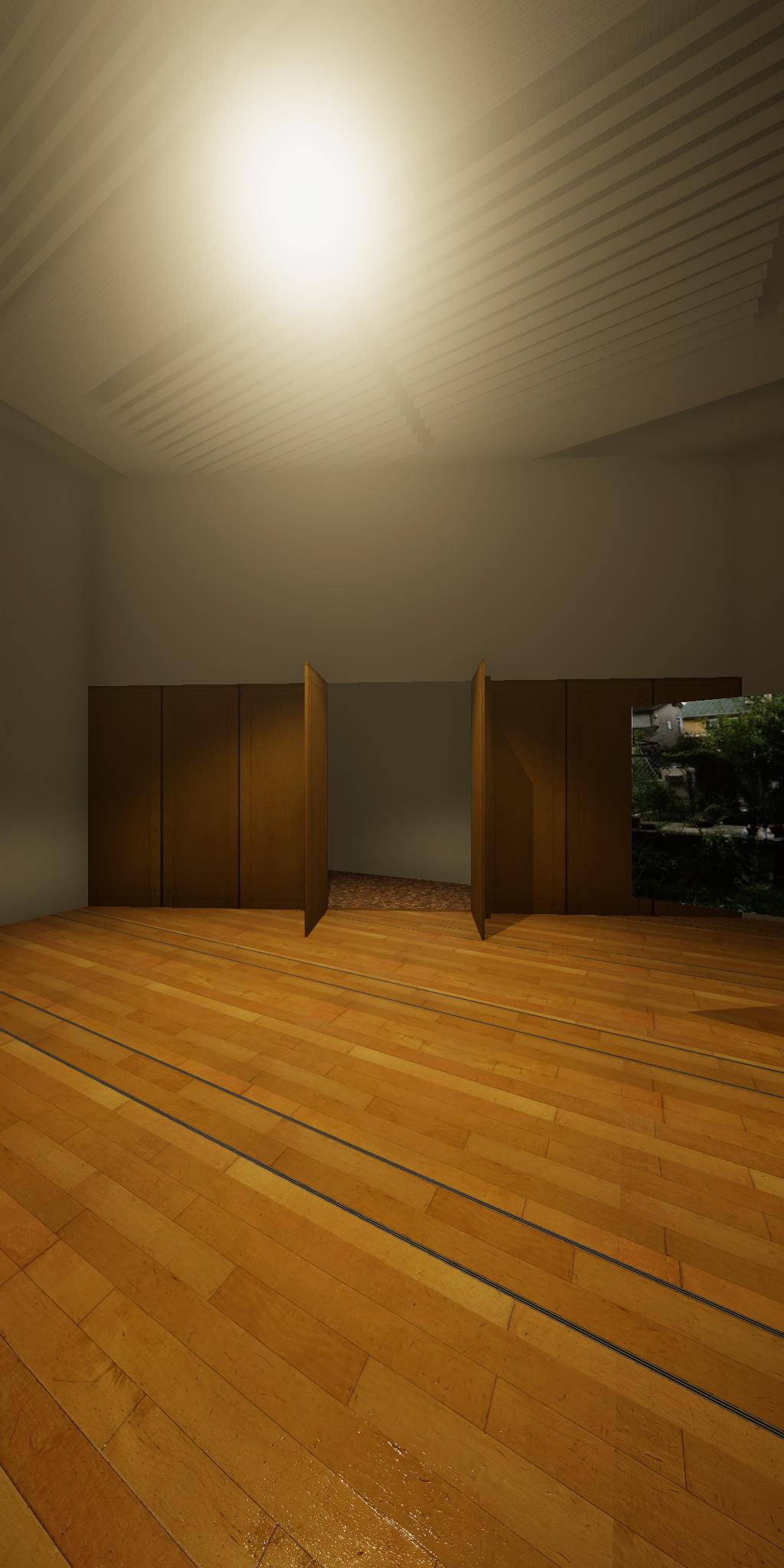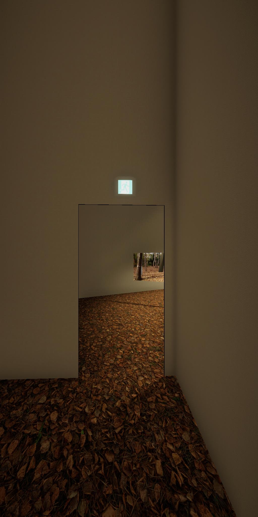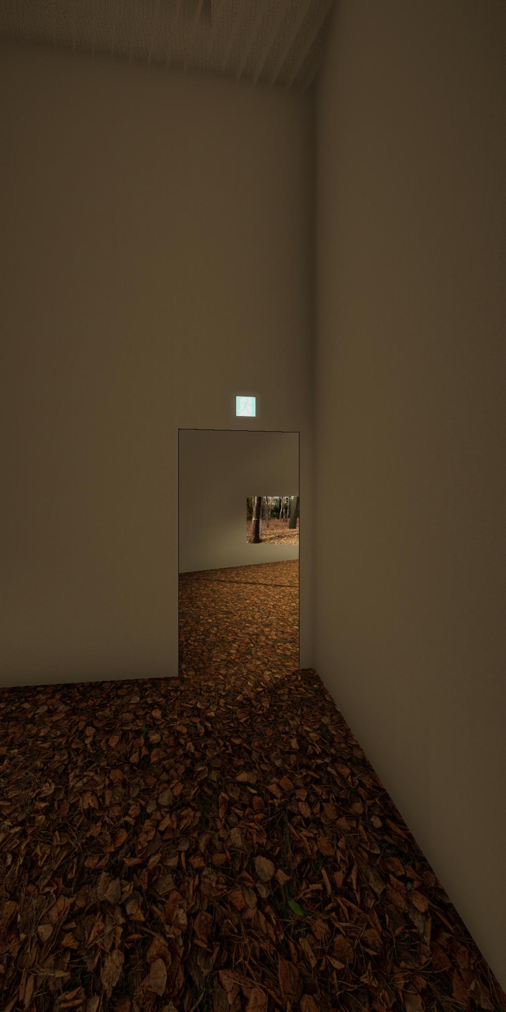 会場に設置された青色をした彫刻が,映像では,なにもない会場とクロマキー合成され,その形を消滅させてしまう作品です.実体としての彫刻が透明になって,展覧会場にある実際の彫刻とは異なる容態で,インターネット配信されます.現実の彫刻の姿は会場に足を運ばないと見ることができません.彫刻という,一般的には現実空間に形をもった立体物として存在する表現形式が,インターネット以降の環境における,多様な鑑賞環境の中でどのように展開可能かを考えます.